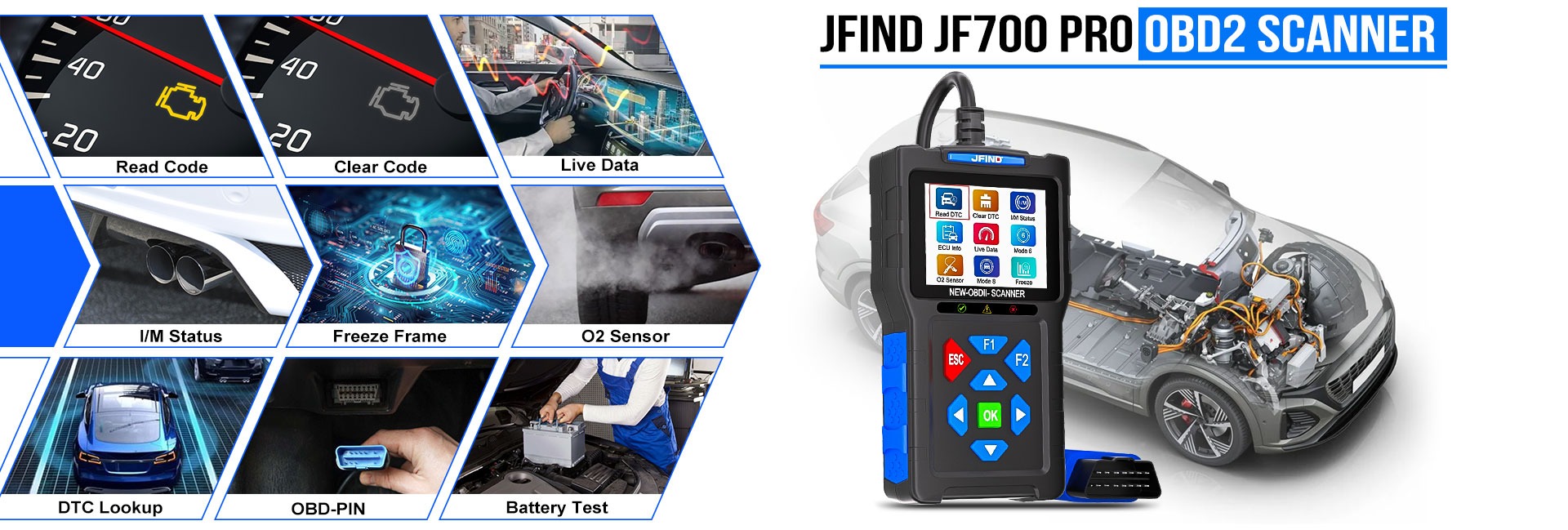 قارئ OBD2 للسيارة jfine JF700 أدوات تشخيص أعطال المحرك واضحة مع ماسح ضوئي للبطارية